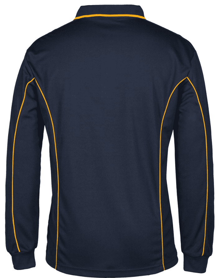 Grid mesh underarm panels for breathability, Unique sleeve print feature, Contrast panels and piping, Knitted collar with contrast placket.